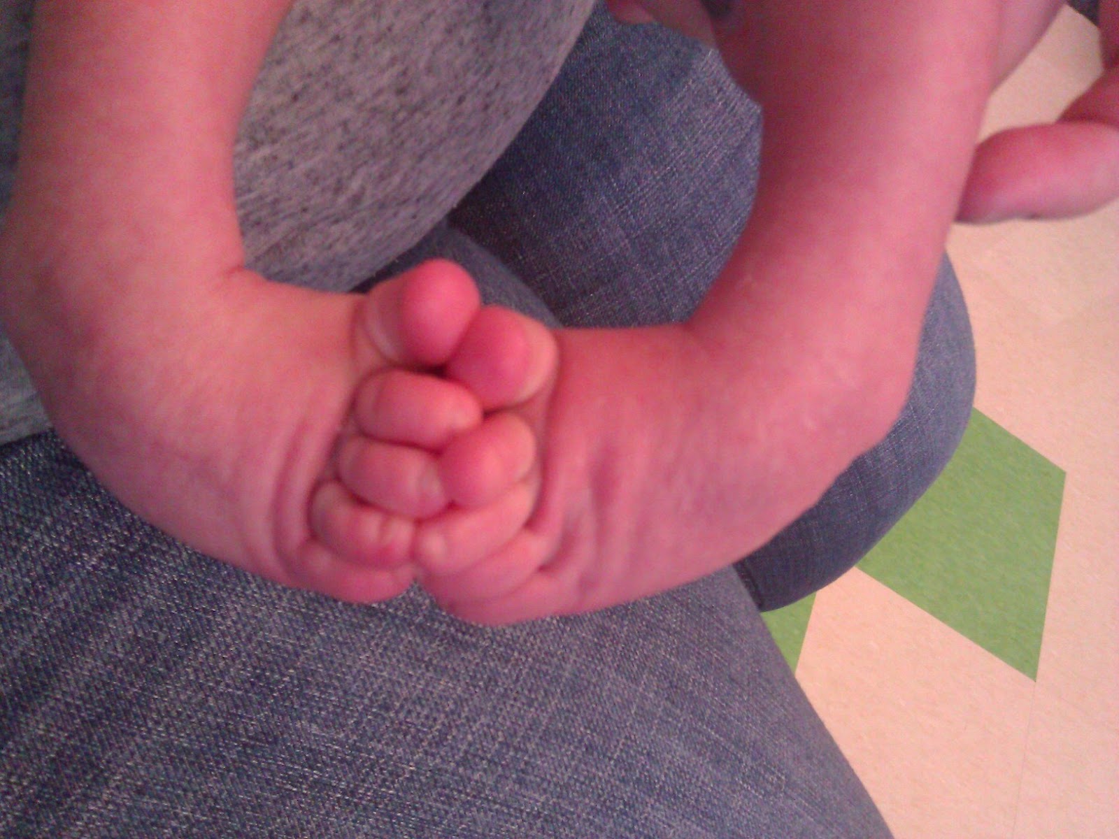 The casts don't seem heavy anymore either. Now it just seems like his normal weight. He weighed 6.8lbs before the casts and I think he's probably 7 and a half pounds now. He can lift both legs up all the way and does so often. He will have skinny calves but this kiddo sure will have some strong thighs when this is all said and done!